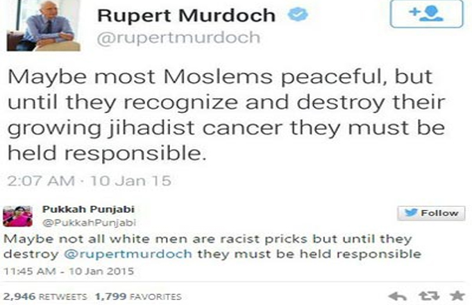İnterpress.az xəbər verir ki, öz Twitter səhifəsindən “Müsəlmanlar cihatçıları yox etmədikcə baş verənlərə görə məsuliyyət daşıyırlar” deyə yazıb.