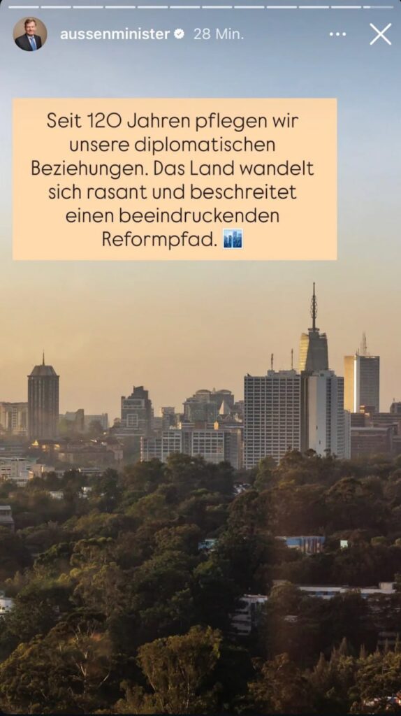 Almaniya XİN rəhbəri Əddis-Əbəbə səfəri ilə bağlı paylaşımında Nayrobidən şəkil paylaşıb.