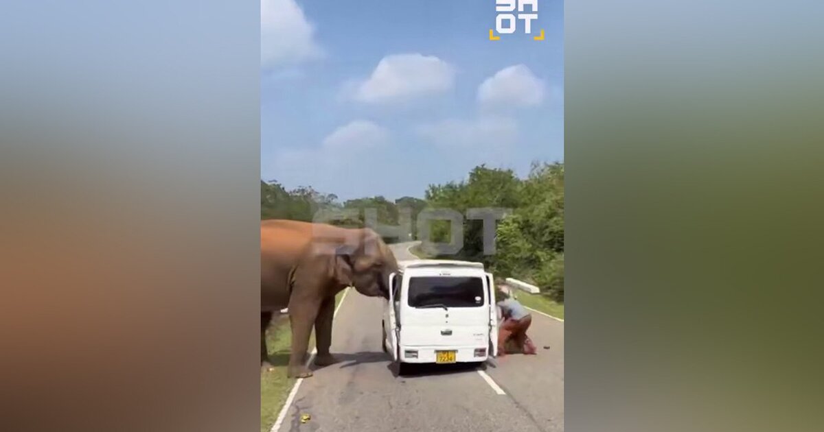 Şri-Lankada istirahət edən rusiyalı turistlər vəhşi təbiətin qorxunc üzü ilə qarşılaşıblar. Səyahət zamanı nəhəng fil onların olduğu avtomobilə hücum edib.