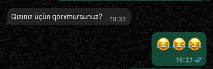 Hadisədən az sonra dələduzlar sürücünü taparaq, onun qızına və ailəsinə qarşı təhdid mesajları yazmağa başlayıblar.