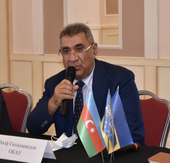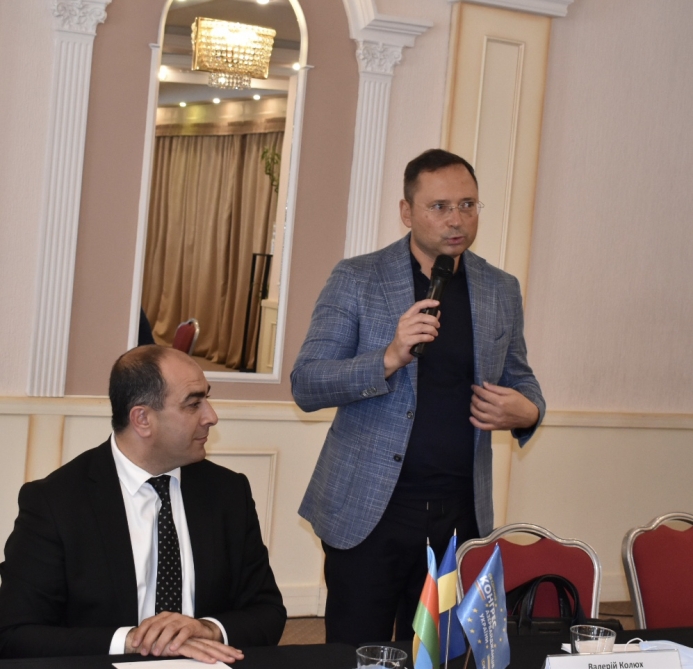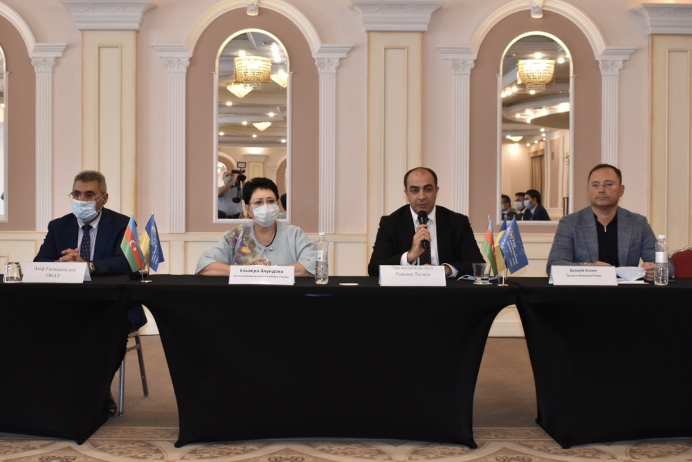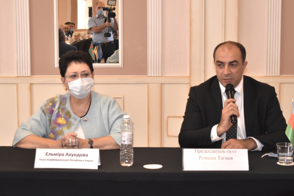 Sonra səfir Elmira Axundovanın, konqresin sədri Rövşən Tağıyevin, Ukrayna Ali Radasının deputatı Sergey Tarutanın, Prezident Ofisinin Xarici siyasət direktoratının nümayəndəsi Andrey Sklyarın, Ukraynanın Vergi Xidmətinin sabiq rəisi, əslən azərbaycanlı Roman Nəsirovun və digərlərinin iştirakı ilə Azərbaycan diasporunun Ukraynada fəaliyyəti, ölkələrimizin əməkdaşlığının inkişaf perspektivləri barədə müzakirələr aparılıb.